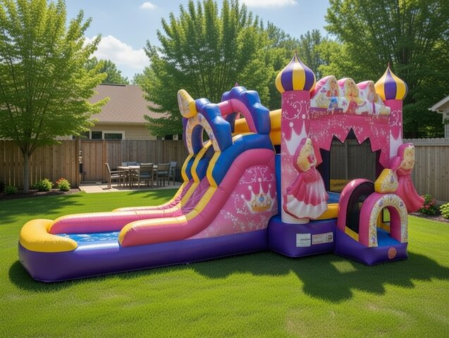 The Diamond Princess Double Lane Combination offers the best of both worlds with its versatile wet and dry features. Whether you're planning a summer bash under the sun or a cool autumn celebration, this inflatable has you covered. The dual-lane design is a standout feature, allowing participants to race each other down the slides. This competitive element adds an extra layer of excitement, making it a hit among both kids and adults.